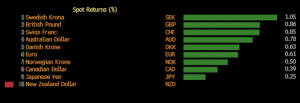The US dollar index finished down 0.5% weakening against all major currencies with the exception of the NZD.