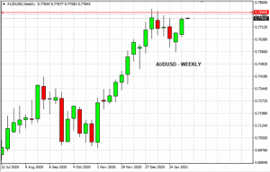 The Aussie continued its impressive rallies after the dip preceding the RBA’s surprise announcement of its bond buying QE programme at the start of the month. A weak US dollar and record iron ore and copper prices are driving it back to the important 78c level.
